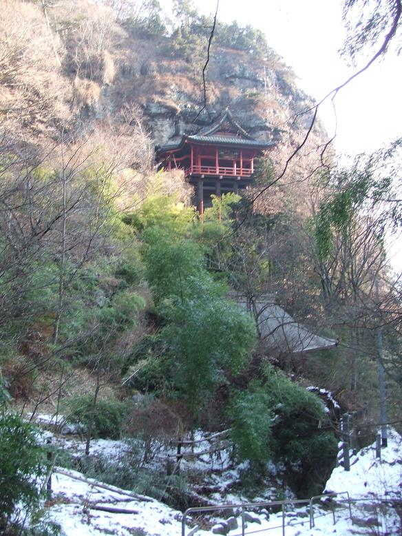 大岩とそれに添えられた伝説、雪の茶色と白の世界は荒々しさもあり、美しさもあった。そして登りきったところにあった観音堂は、期待を裏切らない神聖さを帯びていた。